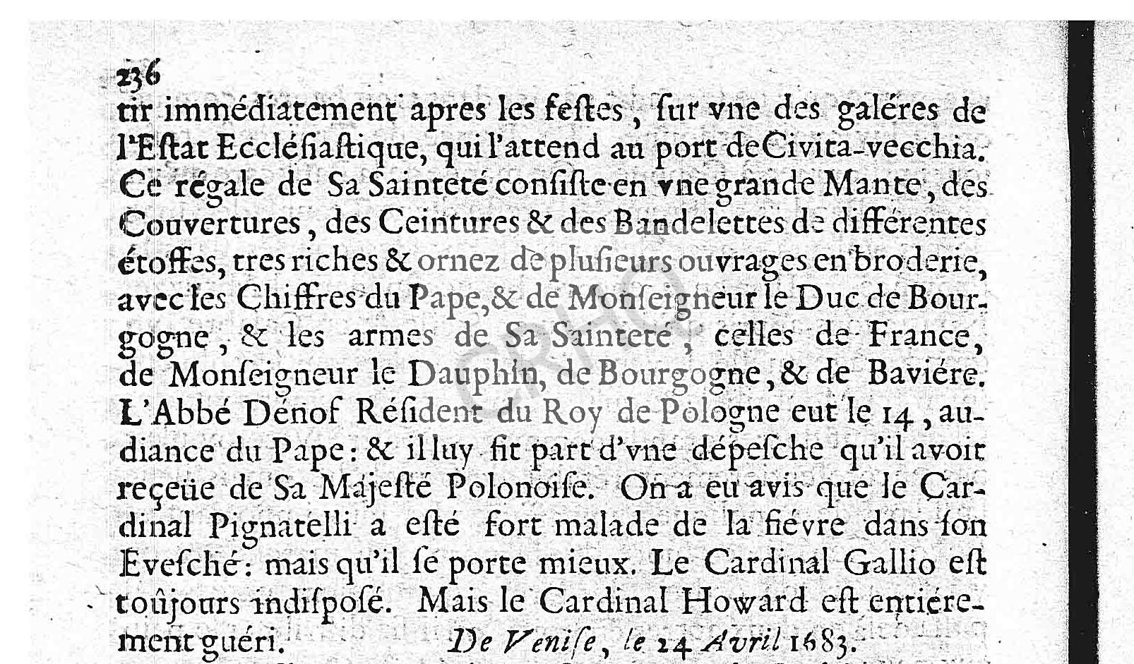 De Rome, le 17 Avril 1683.