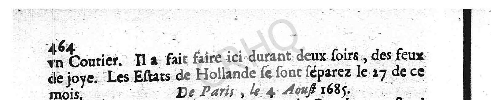 un Courier. Il a fait faire ici durant deux soirs , des feux de joye. Les Estats de Hollande se sont séparez le 27 de ce mois.