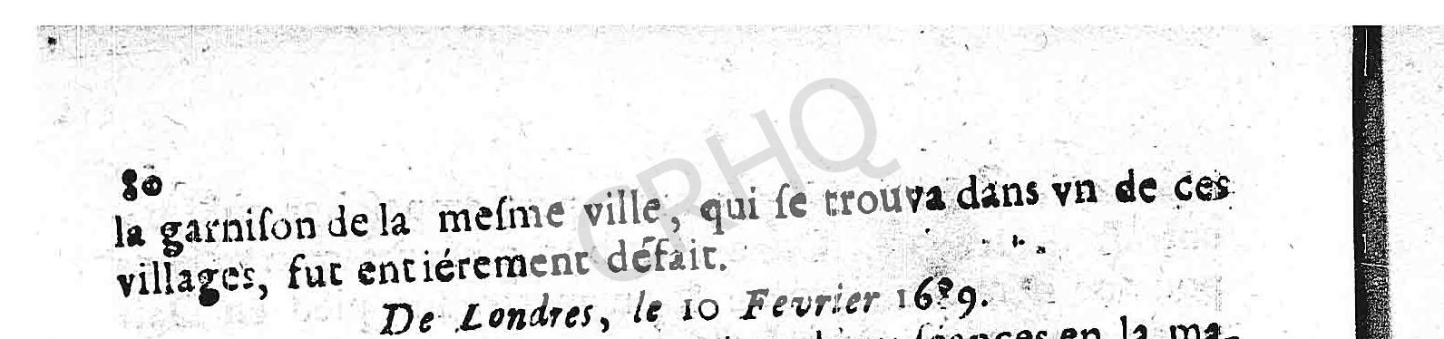 Vn parti François passa la nüit du 3 au 4 de ce mois, aux environs de Stockhem, à quatre lieües de Mastricht : et mit le feu aux villages de Sculh, de Meswick et de Bisdem