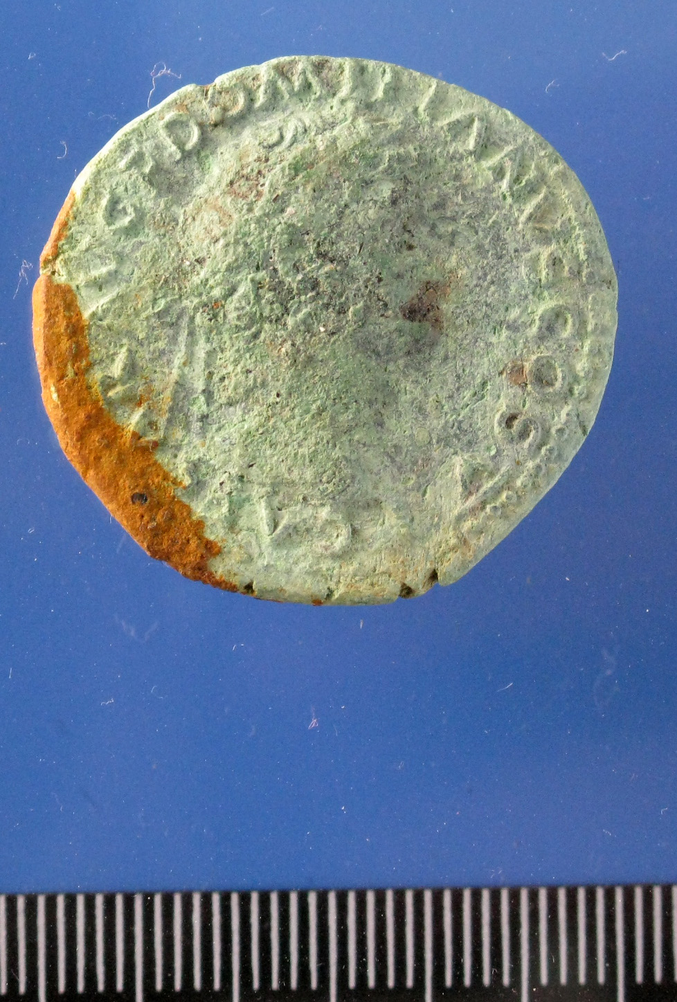 • Tête laurée de Domitien à d. ; globe à la base du cou.