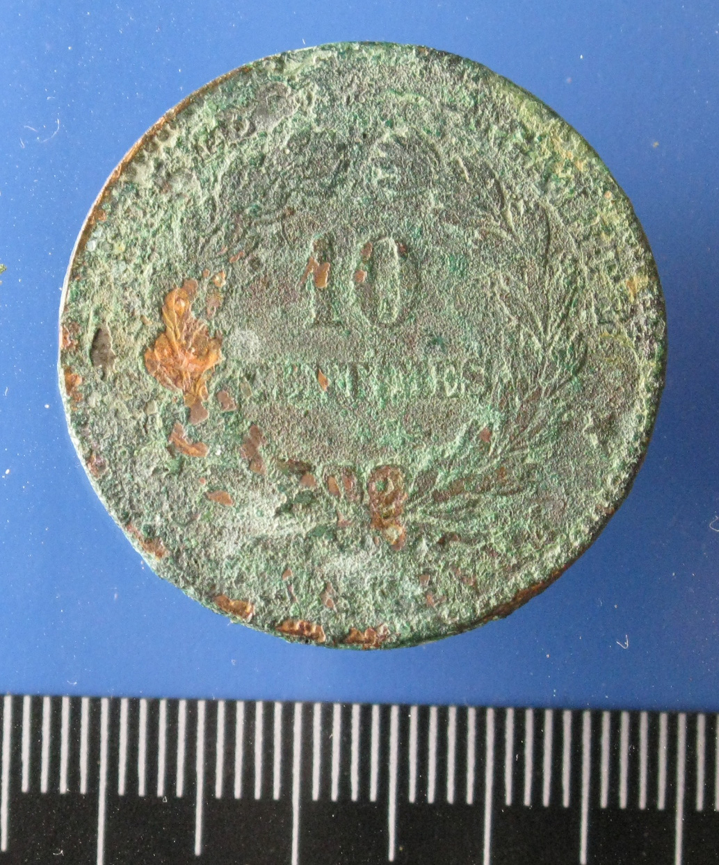 • 10/ CENTIMES/ K dans une couronne formée d’une branche de laurier et d’une branche d’olivier