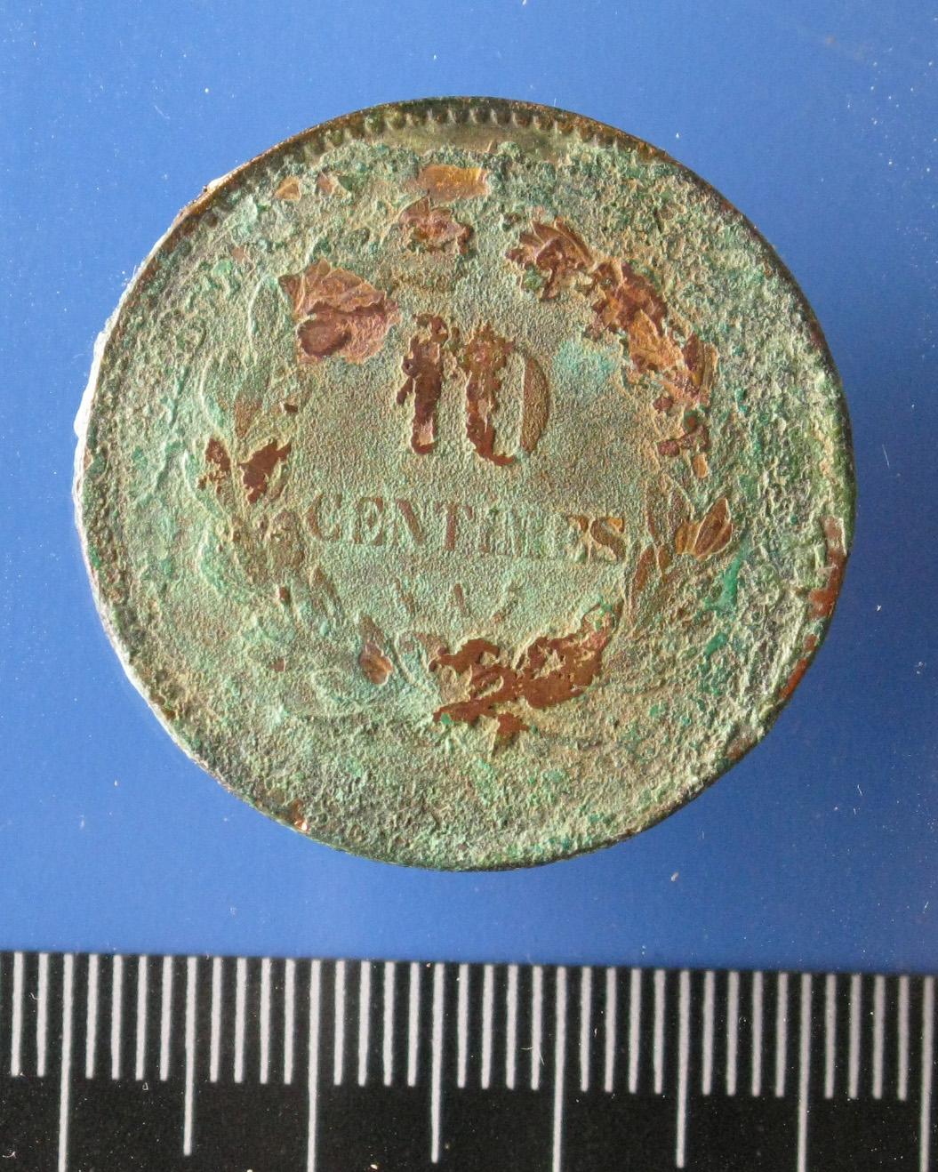 • 10/ CENTIMES/ A dans une couronne formée d’une branche de laurier et d’une branche d’olivier