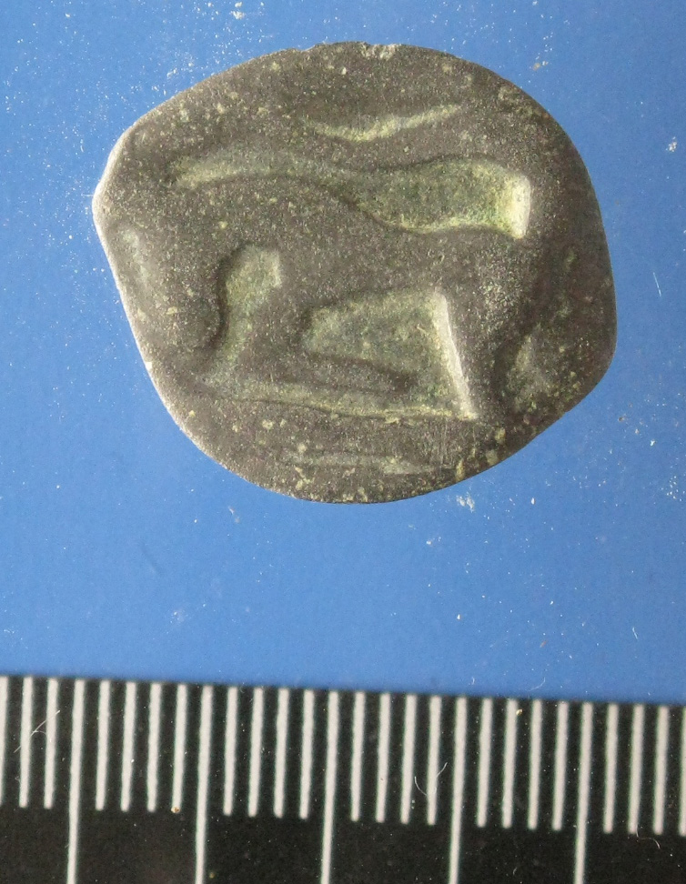 • Taureau à g. dont la patte arrière s'étire vers l'avant en longeant le bourrelet périphérique, la queue forme une esse au-dessus du dos