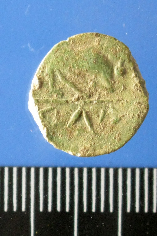 • Taureau cornupète à dr. sur une ligne de terre ; au-dessus du taureau, légende abrégée MAΣΣA , Δ à l'exergue