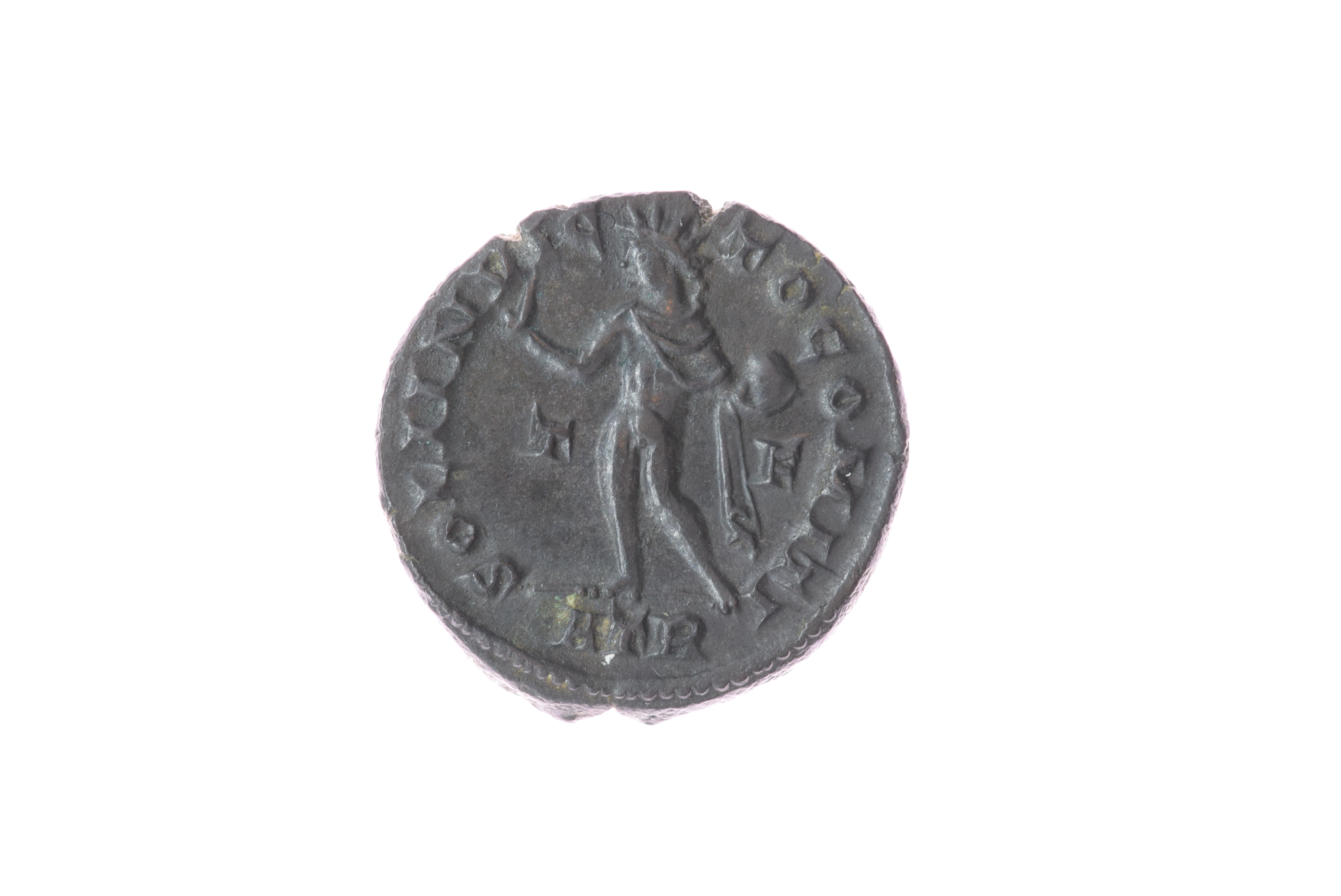 • Sol debout à g. l'épaule g. couverte par une draperie, levant la main dr. et tenant un globe dans la main gauche. , T/F