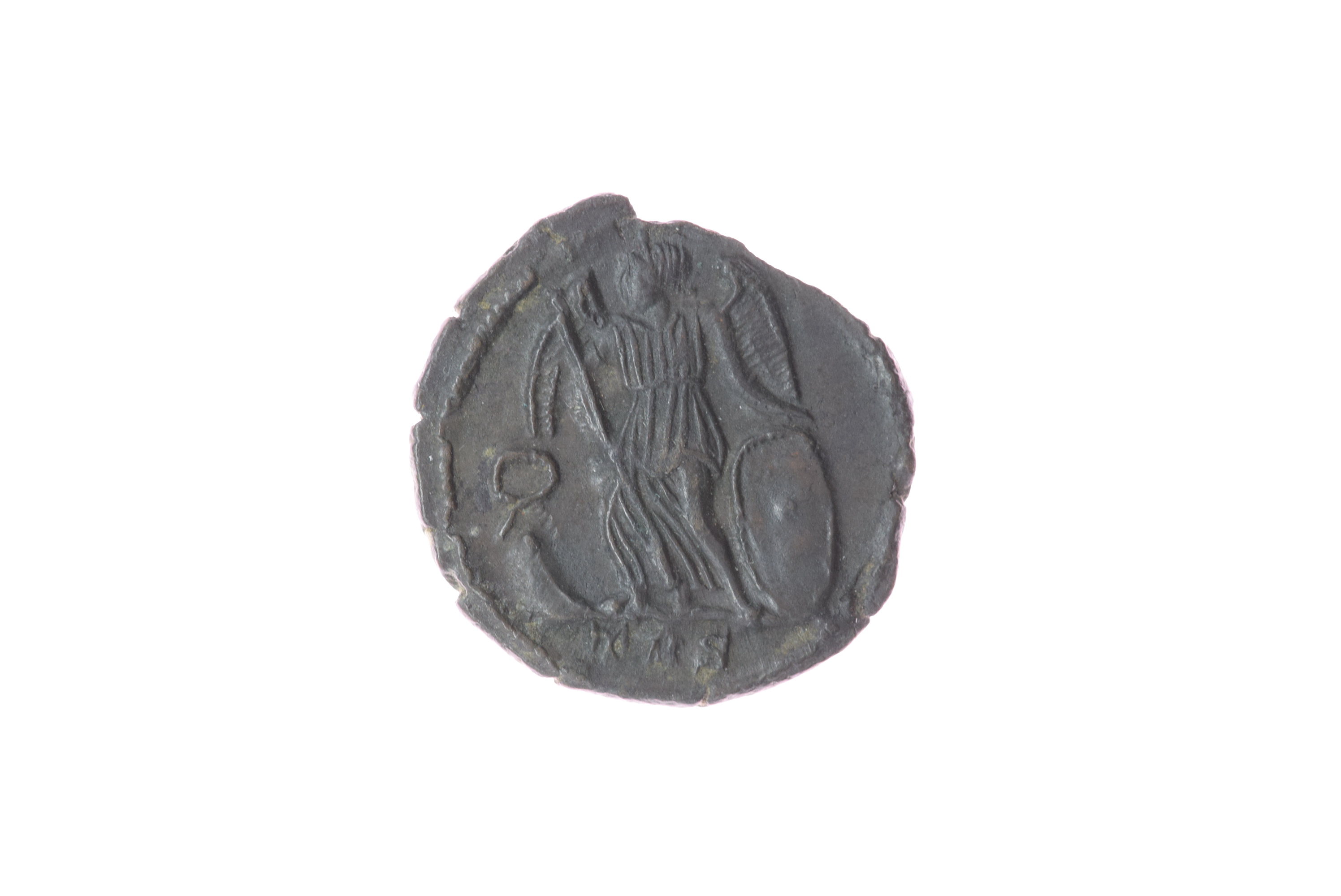 • Victoire debout à g. sur une proue de bateau, tenant une lance et un bouclier.