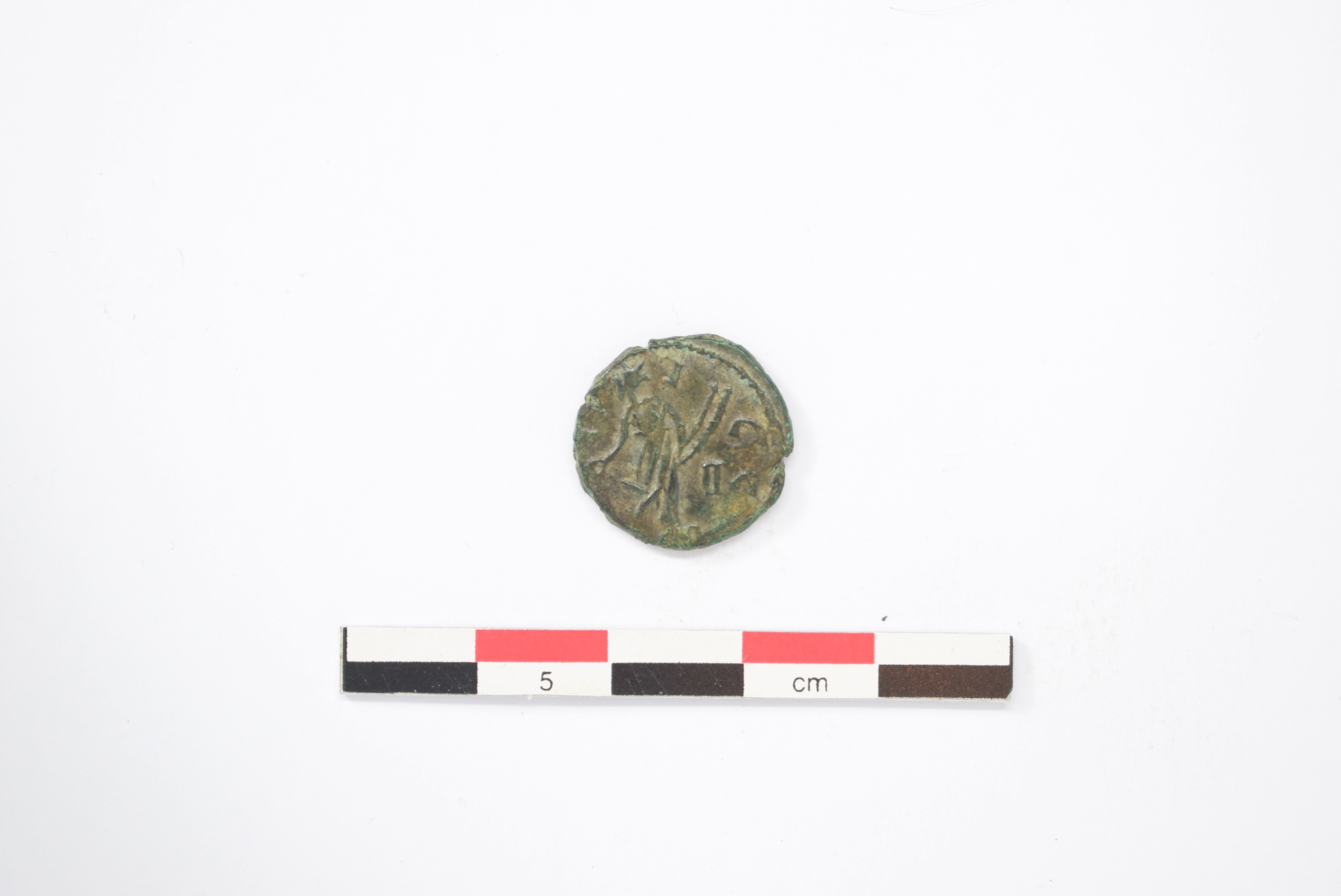 • Personnage debout à g. tenant une corne d'abondance de la main g. et tenant un objet indéterminé de la main dr.