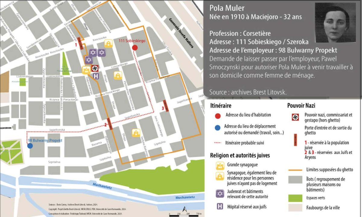 Ce projet pluridisciplinaire et interdisciplinaire vise à reconstituer le ghetto de Brest-Litovsk jusqu’à l’extermination de sa population juive en 1942. À la frontière de plusieurs champs et méthodes de recherche : études des civilisations, histoire et micro-histoire, géographie, sociologie et humanités numériques. Il s’agit de dépasser une approche globalisante focalisée sur le nombre, afin que soient restitués à chaque victime son état civil, son itinéraire et sa dignité. Cette démarche micro-historique est associée à une approche géographique du ghetto en tant qu’espace physique.