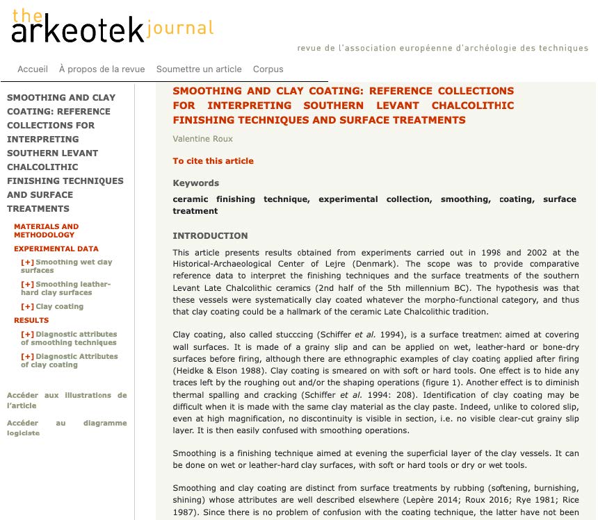 The Arkeotek Journal est une revue d’archéologie et d’ethnologie technique bilingue (français et anglais), exclusivement en ligne, dans laquelle les articles et corpus sont présentés selon les principes de l’écriture logiciste fondés par J.-C. Gardin (format SCD, scientific construct and data). Méthode de reconstruction du discours scientifique en Sciences humaines et sociales s’appuyant sur les articulations logiques du raisonnement, le logicisme représente un défi tant sur le plan scientifique que sur le plan de l’ingénierie éditoriale. Ce projet est développé en collaboration avec le LABEX « Les passés dans le présent : histoire, patrimoine, mémoire ».