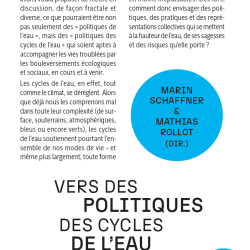 Les cycles de l'eau, en effet, tout comme le climat, se dérèglent. Alors que déjà nous les comprenons mal dans toute leur complexité (de surface, souterrains, atmosphériques, bleus ou encore verts), les cycles de l'eau soutiennent pourtant l'ensemble de nos modes de vie — et même plus largement, toute forme de vie. À l'heure des bouleversements écologiques, ces cycles de l'eau apparaissent de moins en moins renouvelables et de moins en moins inépuisables. Dès lors, comment donc envisager des politiques, des pratiques et des représentations collectives qui se mettent à la hauteur de l'eau, de ses sagesses et des risques qu'elle porte ?