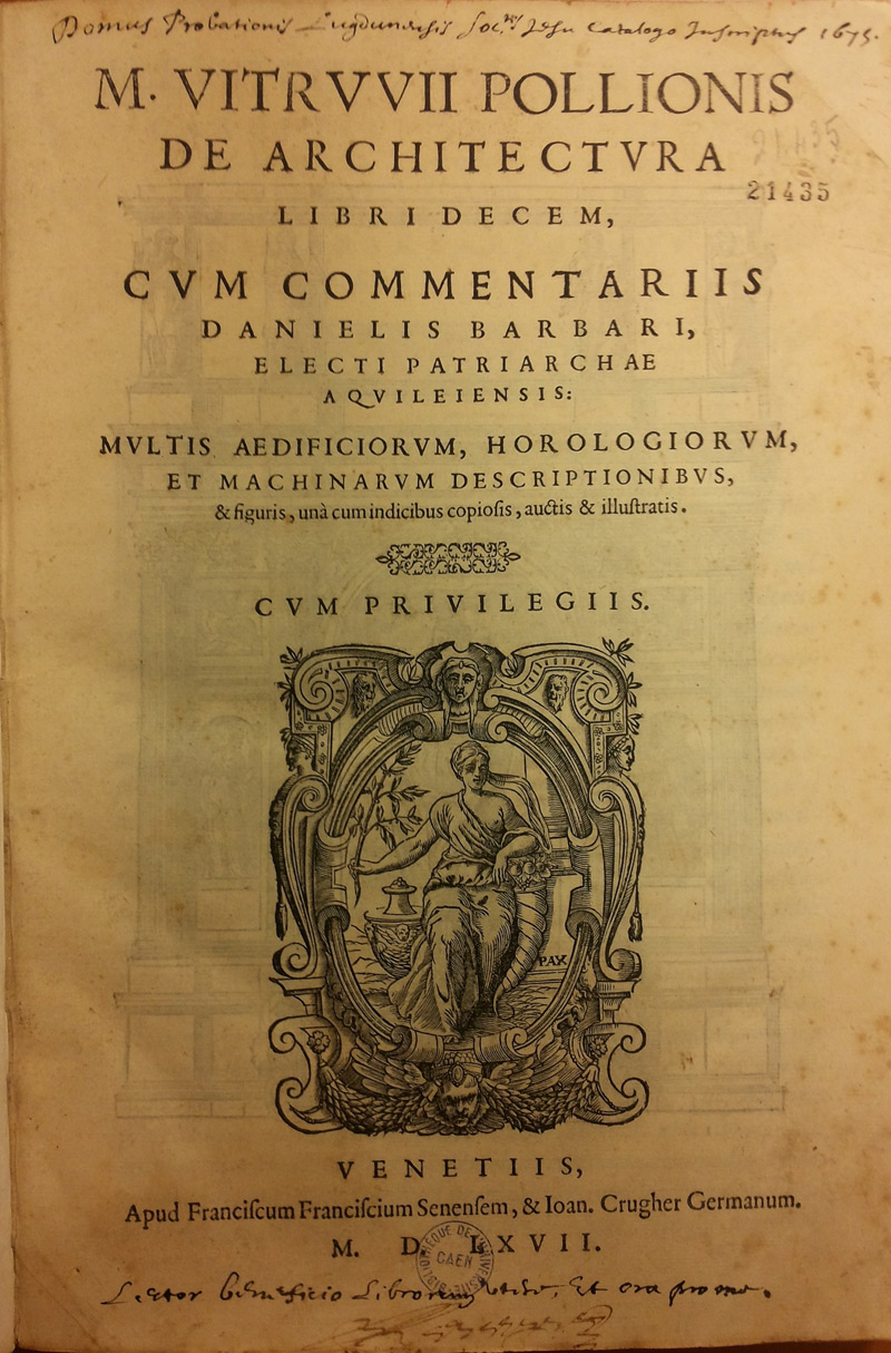 | Titre : | M. Vitruvii Pollionis De architectura libri decem, cum commentariis Danielis Barbari, electi Patriarchae Aquileiensis : multis aedificiorum, horologiorum, et machinarum descriptionibus, & figuris, una cum indicibus copiosis, auctis & illustratis. |