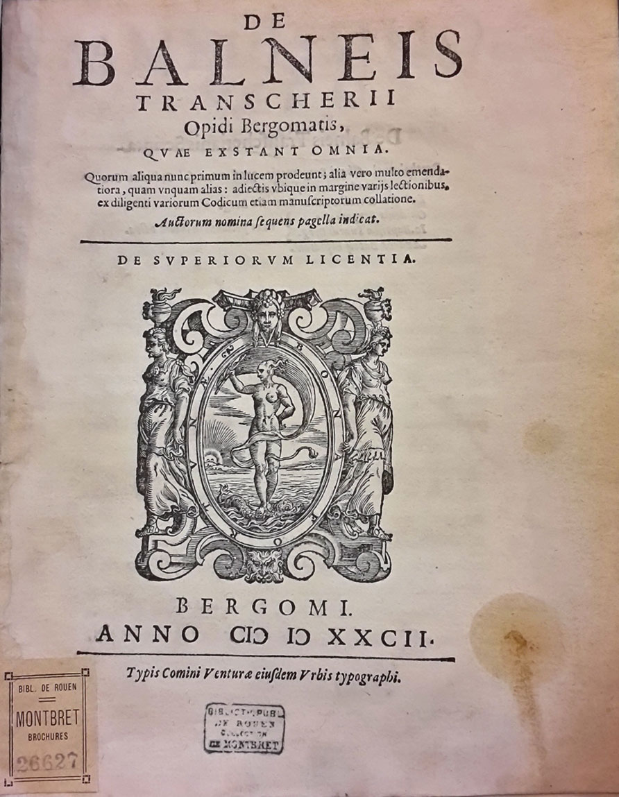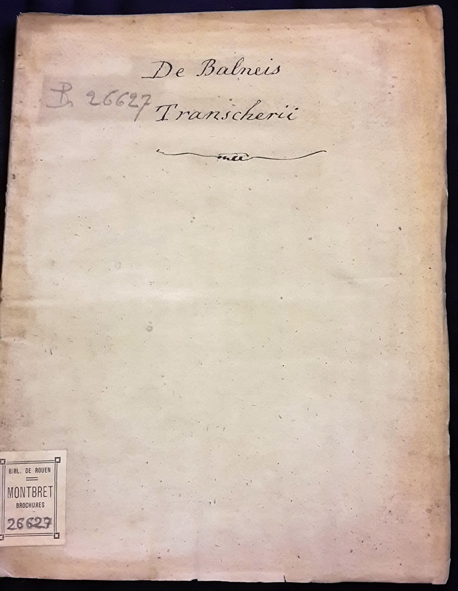 - Broché ; titre ms. (« De Balneis Transcherii ») sur couv. sup. ; tranches bleues.