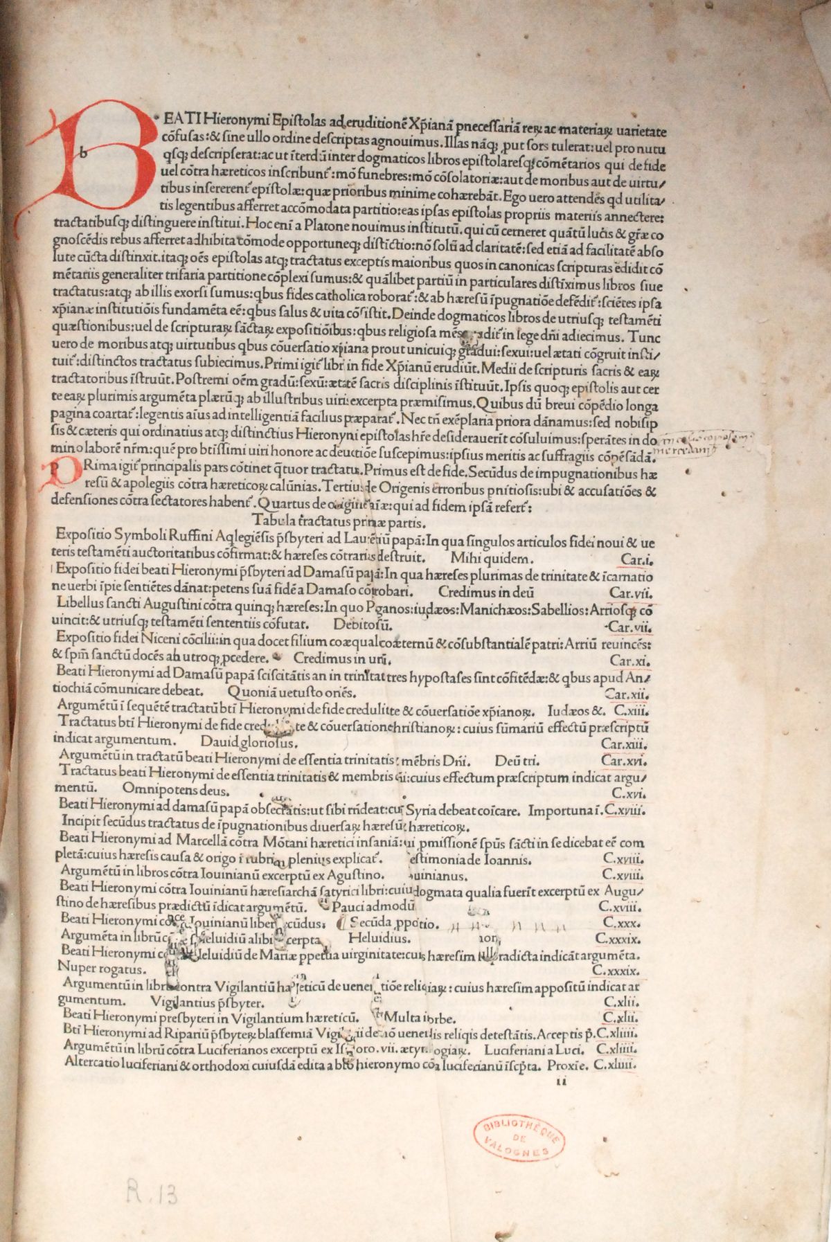 | Titre : | Beati Hieronymi Epistolas ad eruditionem Christianam pernecessariam rerum ac materiarum varietate confusas: et sine ullo ordine descriptas agnovimus. |