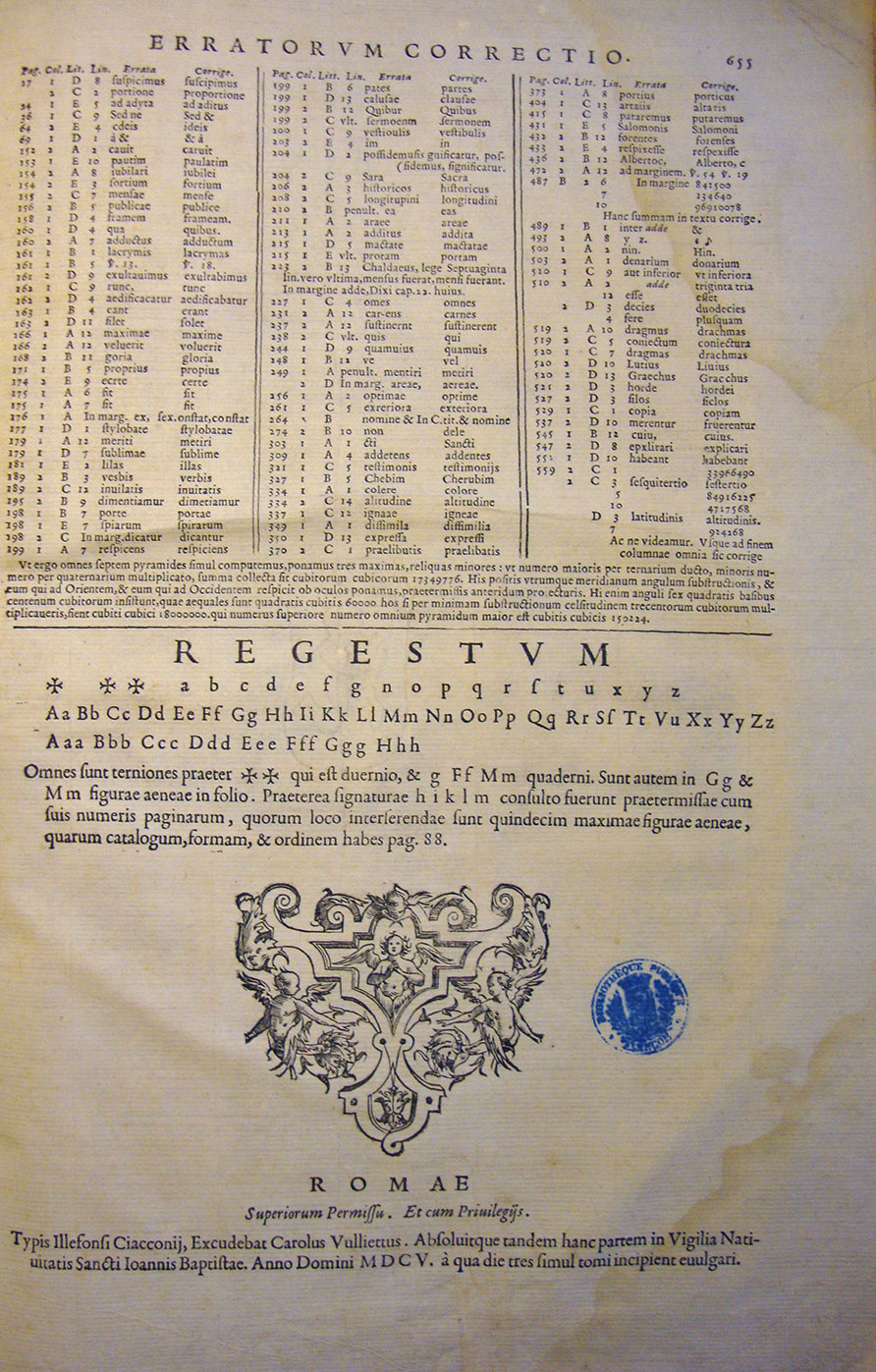 [3] Prado, Jerónimo de et Villalpando, Juan Bautista, Apparatus vrbis ac templi Hierosolymitani pars I et II ..., Roma, Vullietti, Carlo, 1602-1604.