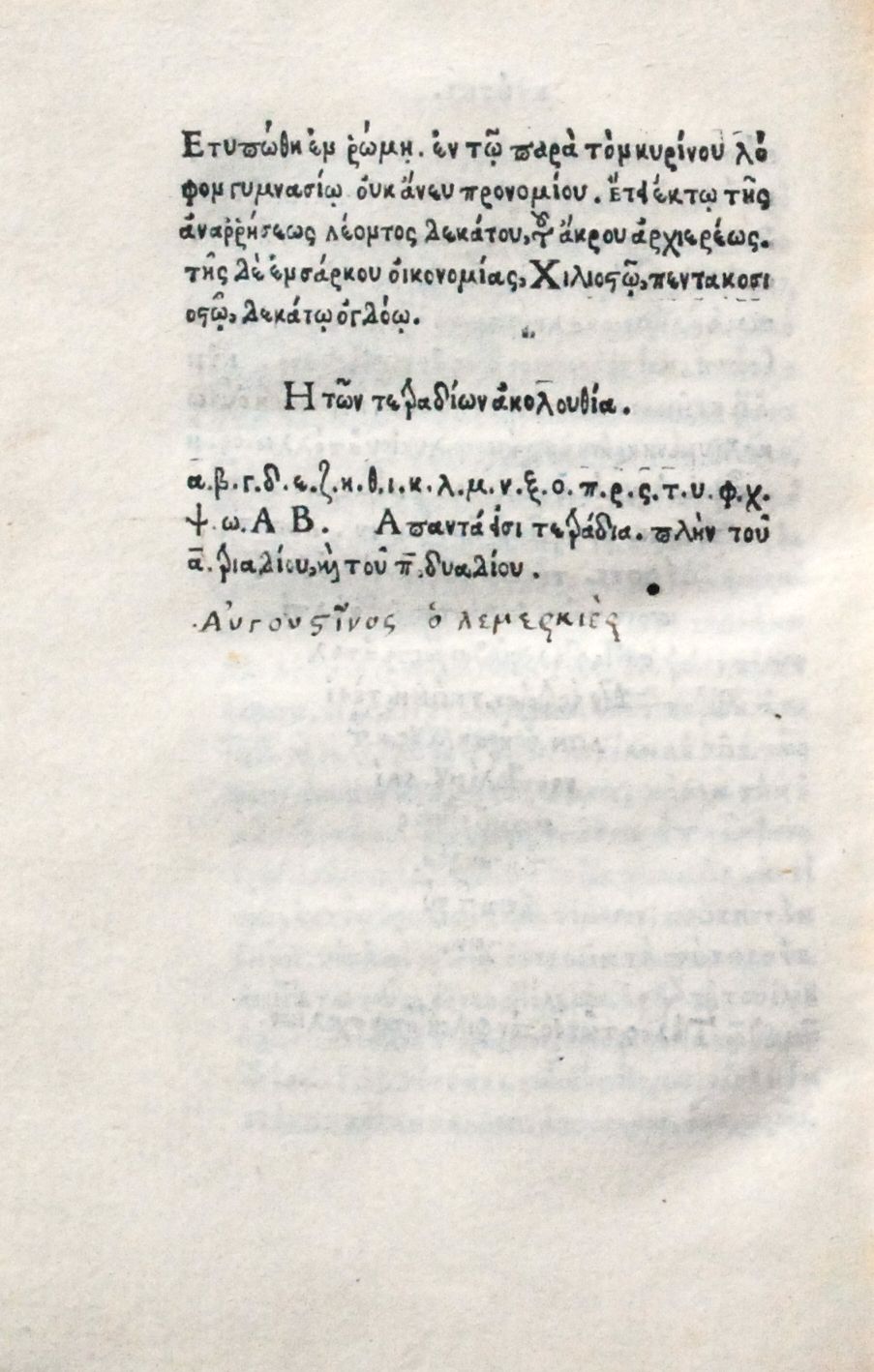 - Notes : p. de titre : « non sine privilegio » ; colophon : « Etypōthē en rōmēi : en toi para tou Kyrinou lophon gymnasioi, 1518 » ; texte en grec ; la signature gamma (Γ) est en majuscule.
