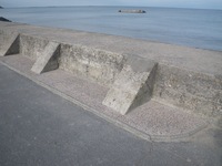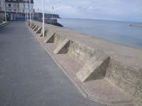 Mur antichar construit en béton armé et installé en travers de l'ancienne cale des pêcheurs. Cet élément haut de 3 mètres, large de 2 mètres et long de près de 50 mètres bloquait la progression de véhicules débarqués sur la plage. Une fois le mur construit, le reste de la cale a été remblayé ce qui a permis de créer l'actuelle place du 6 juin. Une rangée de barbelés surmontait ce mur. Une fois le port artificiel d'Arromanches mis en place, une partie du mur fut détruite pour ouvrir un passage pour les véhicules. Aujourd'hui ce mur existe toujours il fait office de digue et est parfaitement conservé.
