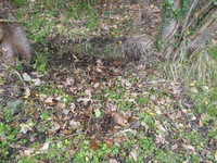 Réseau de tranchées ouvertes desservant le site et encore partiellement lisibles dans le paysage. Elles sont aujourd'hui en partie comblées et recouvertes de végétation. Le tracé réalisé sur le plan reste relativement imprécis par rapport à la réalité. Ce réseau traverse la parcelle de pelouse d'une des habitations et une partie du bois où il est plus visible. Une petite fosse de forme irrégulière, située à proximité du poste de tir, a été considérée comme faisant partie du réseau de tranchées.