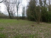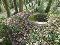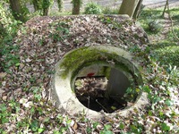 Béton apparent dans l'herbe et présent en limite de parcelle clôturée : il pourrait s'agir d'une citerne ou d'un petit aménagement bétonné enfoui sous la terre.