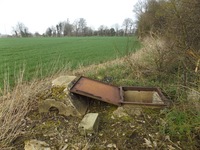 Petit site lié aux transmissions et composé d'un unique ouvrage. Ce petit relais téléphonique isolé dans la campagne se situe au nord du bourg de Bazenville. Il fait partie des nombreux relais téléphoniques qui jalonnaient la campagne et permettaient ainsi de relier grâce au téléphone les ouvrages fortifiés entre eux. Comme la majorité de ces abris téléphoniques, ce petit site a été implanté à l'écart, le long d'un chemin agricole communal. A l'heure actuelle, l'ouvrage se trouve en bordure d'une parcelle de grande culture. Il est en bon état de conservation : il possède encore sa trappe métallique ainsi que son échelle, et des traces de peinture sont présentes. D'après les témoignages locaux, il y a longtemps eu un appareil téléphonique accroché à un mur : celui-ci a disparu et l'ouvrage est inondé.