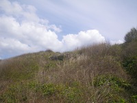 Butte de terre pour flak. Située devant le casemate d'artillerie. Actuellement sous la végétation, sa forme se distingue dans l'enclos du Conservatoire du Littoral.