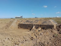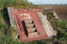 Petit ouvrage semblant être en béton armé, visible sur les photographies aériennes actuelles. Il pourrait s'agir d'un élément de défense rapproché de type tobrouk, d'un petit abri indéterminé ou d'une cuve. L'agriculteur semble éviter systématiquement trois abris similaires dans cette zone. Ils n'apparaissent pas distinctement sur les photographies aériennes de juin 1944 mais devaient être en lien avec une grande tranchée rectiligne qui elle est bien visible.