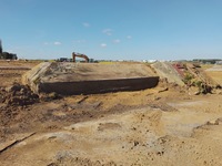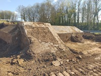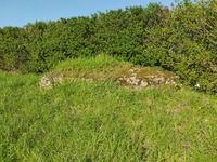 Anomalie détectée par la présence d'une tache d'herbe dans un champ labouré. Il pourrait s'agir de béton armé. Sa fonction n'a pas pu être précisée.