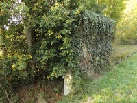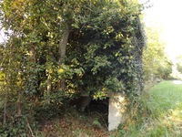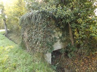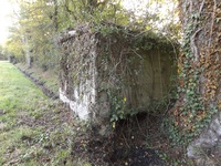 Sur chaque site de lancement de V1, une ou deux niches à munitions étaient présentes. Ces constructions réalisées en briques ou en béton servaient au stockage des détonateurs de la bombe. De taille modeste, ces niches avaient été systématiquement installées à l'écart des autres infrastructures de la base de lancement afin d'éviter tout risque d'accident. Cette niche construite en béton armé et implantée en bord de route est en bon état de conservation. Son ouverture a toutefois été murée. Elle offre la particularité d'avoir été érigée sur un fossé de drainage. Un passage a donc été aménagé sous la niche pour ne pas bloquer l'écoulement de l'eau.