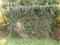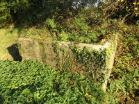 A proximité de l'abri atelier, deux cuve étaient systématiquement présentes. Elles assuraient le stockage de l'eau nécessaire au rinçage des générateurs de vapeur. Cette cuve de forme rectangulaire est toujours visible et demeure en bon état. Elle est en revanche en partie comblée et recouverte de végétation.