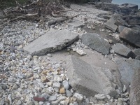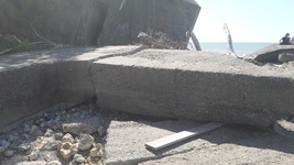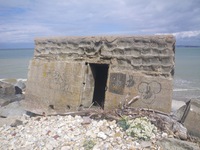 Abri pour personnel de type 141c situé sur l’aile gauche du site. Ce type d’ouvrage est fréquent dans ce secteur. Il sert à la fois de casernement, de soute à munitions et de défense rapprochée. L’ouvrage se compose donc de la chambre de troupe, de la soute et d’un mur pare-éclats dans lequel un tobrouk est fondu. Généralement dans ce type d’abri, une citerne à eau est aménagée au fond de la soute, mais ici il n’en est rien. Comme le reste du site, l’abri a été construit en surplomb de la plage. Mais l’érosion du littoral le fait rapidement tombé sur la grève. Il est dorénavant en deux gros blocs. À l’intérieur, une porte blindée démontée, le volet de la canonnière, des supports de couchettes et les traces du système de ventilation sont encore présents. Une autre porte métallique ferme l’accès au tobrouk. Mais, il n’a pas été possible de vérifier si elle est d’origine ou si elle a été ajoutée après la guerre pour sécuriser l’abri.