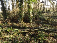 Grande plate-forme rectangulaire en béton implantée dans la zone de vie située au sud du pôle Douvres I. Cette dernière supportait en 1944 un grand baraquement en bois destiné au logement des soldats en dehors des attaques aériennes. Ces baraquements permettaient d'apporter davantage de confort que les abris bétonnés. Une fois la guerre terminée, les baraquements ont été rapidement démontés et récupérés par les populations civiles. A l'heure actuelle, seule la dalle est toujours visible mais désormais recouverte par les arbres et la végétation.