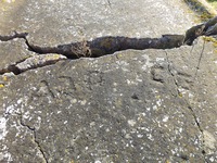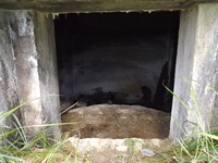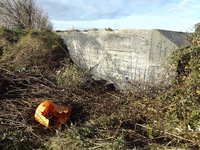 Encuvement hexagonal réalisé en béton armé à partir d'un coffrage de bois. Cet élément aujourd'hui recouvert par les ronces n'est pas clairement identifié. Il pourrait s'agir d'un encuvement pour projecteur. N'ayant que peu d'information sur ce type d'élément, nous en resterons à cette hypothèse. A l'heure actuelle, cet encuvement est toujours visible au centre de la position.