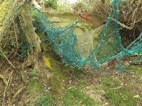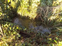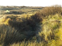 Traces du réseau de tranchées qui desservait en 1944 les différents ouvrages. Seuls quelques tronçons sont encore observables. La majeure partie du réseau a été remblayée au fil des années et n'est plus réellement visible.