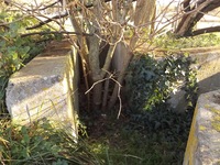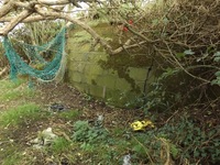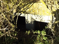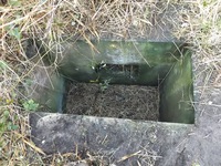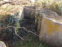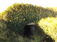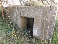 Petite soute réalisée en béton armé et destinée au stockage de munitions. Cet élément de petite dimension se trouve aujourd'hui dans une haie et est presque totalement remblayé.