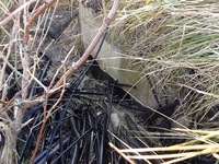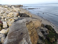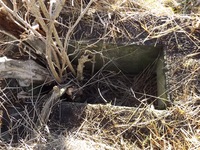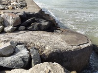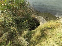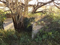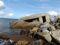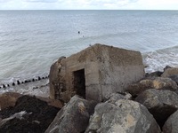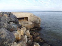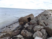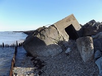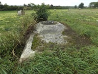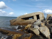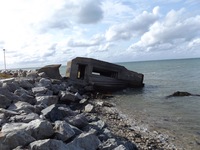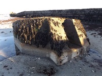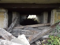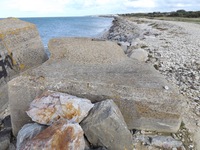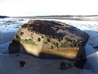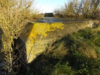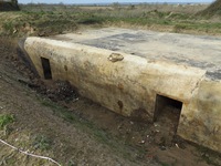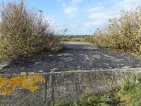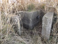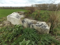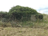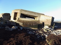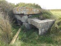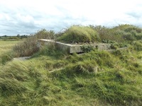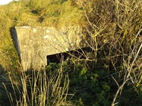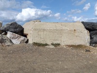 Restes d'un abri non identifié réalisé en béton armé. Cet élément semble avoir subi une explosion. Son état ne permet pas de l'identifier clairement.
