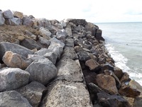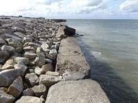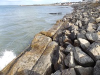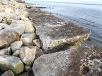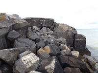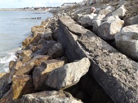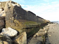 Mur antichar réalisé en béton armé à partir d'un coffrage en bois. Cet élément massif de plus de deux mètres de haut était destiné à empêcher le passage de véhicule. On trouvait des tronçons de mur antichar dans plusieurs endroits de Grandcamp mais systématiquement autour du port ou bien le long du front de mer. Une fois la guerre terminée, ces murs ont été dynamités afin de rendre la circulation à nouveau possible. Il n'y a plus rien de visible actuellement.