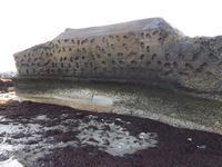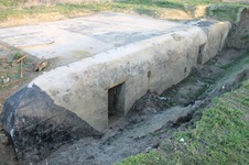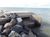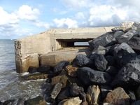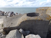 Encuvement pour canon de 50 mm KwK réalisé en béton armé. Cet élément composé d'un poste de combat disposant de niches pour le stockage des munitions accueillait le canon avant la construction de la casemate à double embrasures. Une fois la casemate achevée, l'encuvement est devenu inutile et il est très probable qu'il ait été en partie détruit par les troupes allemandes afin de libérer le champ de tir de la casemate. Désormais, cet ouvrage se trouve sur l'estran à cause de l'érosion marine.
