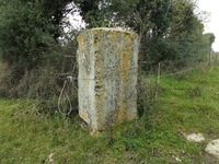 Bloc cubique de béton armé installé le long d'un ancien accès à la batterie. Cet élément fonctionne souvent par deux et était destiné à arrimer un obstacle tel qu'une porte belge. Haut d'environ 1,50 mètre, cet élément faisait partie des divers et nombreux obstacles anti véhicule employés par les troupes allemandes. Ce gros bloc était solidement ancré dans le sol et disposait de plusieurs anneaux en acier. Sur ces anneaux il était très facile de venir accrocher des obstacles ou bien tout simplement une clôture de barbelés. Ils permettaient ainsi de bloquer rapidement l'accès au Wn. 84 en cas d'approche de véhicules ennemis. Aujourd'hui situé en bordure d'une haie dans un champ, il demeure en bon état de conservation.