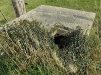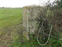 Relais téléphonique également appelé puits à câbles construit en béton armé à partir d'un coffrage en bois. Ce petit bunker se compose d'une unique pièce aux dimensions très réduites. On accède à l'intérieur du bunker par le haut grâce à une trappe métallique circulaire qui donne sur des échelons en métal fixés dans la paroi. Un tuyau métallique recourbé vers le sol émerge du toit du bunker. A l'intérieur du relais on trouvait des bobines, des raccords et tous les câbles électriques des environs qui convergeaient ici. Aujourd'hui, ce petit bunker se trouve en bordure d'une haie dans un champ cultivé. Il est en très bon état de conservation mais est en grande partie recouvert de végétation. La trappe métallique n'est plus présente.