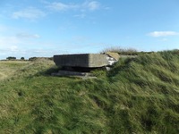 Casemate inachevée pour pièce d'artillerie. Cet élément aurait dû se composer d'une chambre de tir et de deux soutes à munitions disposées de part et d'autre d'un couloir d'accès. L'orientation de l'embrasure aurait permis à un canon de prendre sous son feu l'ensemble de l'embouchure de la Vire. Le 6 juin 1944, un canon d'origine tchèque du type le. F.H. 14/19 (t) de 100 mm aurait dû se trouver à l'intérieur. Les travaux de construction du site n'ayant pas été achevés à temps, les obusiers avaient été installés en arrière de la batterie pour les protéger des bombardements réguliers. Restée au stade du ferraillage, cette casemate n'a jamais été achevée. Une photographie prise en 1944 montre les échafaudages et les bétonnières encore en place à proximité. Contrairement aux trois autres casemates, celle-ci a été détruite rapidement après la fin des conflits afin de permettre la remise en culture de la parcelle.