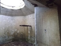 Petit abri pour appareil de transmission par signaux lumineux (Lichtsprechgerät) réalisé en béton armé et prenant la forme d'un tobrouk. Cet élément avait été accolé à une casemate à double embrasure. Il se trouvait donc en hauteur et permettait de communiquer avec les sites situés dans les terres, notamment les deux batteries de Grandcamp. Contrairement à la casemate contre laquelle il était accolé, ce petit abri a été épargné par l'érosion et n'a pas basculé. Il est toujours visible et demeure en bon état.