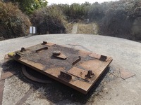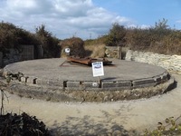Encuvement circulaire pour pièce d'artillerie avec soutes à munitions attenantes. Cet élément a été réalisé en béton armé et permettait à une pièce d'artillerie de prendre place sur une plaque en acier munie d'un pivot (leichte drehbettung en allemand) au centre d'une large plate-forme. La plaque d'origine est visible, elle fut découverte lors des travaux de remise en état du site. Le canon pouvait ainsi pivoter sur 360 degrés et ouvrir le feu dans toutes les directions. L'encuvement se trouvait environ un mètre sous le niveau du sol et protégeait ainsi les servants et leur canon. Un ensemble de cinq petites soutes entourant la plate-forme assuraient le stockage des obus. En 1944, un obusier d'origine française Schneider Mle 1917 de 155 mm (s.F.H.414 (f) pour la dénomination allemande) se trouvait installé dans cet encuvement. Grâce à sa portée de près de 11000 mètres, ce canon pouvait prendre sous son feu la totalité de la Baie des Veys. A l'heure actuelle, l'encuvement est toujours visible et demeure en bon état général. Un canon allemand de 155 mm postérieur à la Seconde Guerre mondiale et des sacs de sable ont été installés par le propriétaire du musée à des fins pédagogiques.