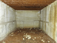 Ouvrage construit en béton armé, enterré à flanc de colline. Il s'agit d'une construction de forme rectangulaire mesurant environ 8x6m dont l'accès se faisait depuis le haut grâce à une ouverture d'un mètre de large. On pouvait descendre à l'intérieur par une échelle en métal. D'après le propriétaire du terrain, cet ouvrage aurait été une citerne permettant de contenir de l'eau. L'entrée est aujourd'hui remblayée mais la structure semble être en bon état. Elle est particulièrement bien visible sur les photographies aériennes des années 50 et 60, avant la reprise de la végétation.