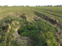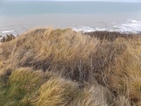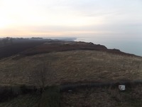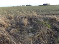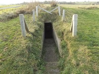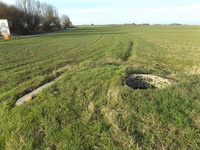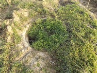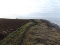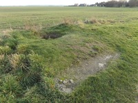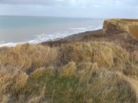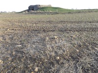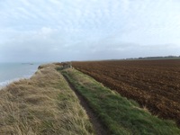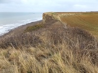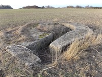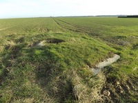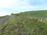 Tranchée ouverte creusée dans le sol juste au bord de la falaise. Cette petite portion de tranchée est le seul vestige d'un réseau autrefois plus important qui a disparu lors de la remise en culture des champs alentours. La tranchée mesure encore environ un mètre de profondeur. Elle se sépare en deux et dessert probablement deux anciens postes de tir aménagés directement dans le sol. A l'heure actuelle la tranchée reste bien visible malgré la végétation mais est directement menacée par le recul de la falaise.
