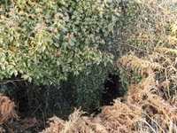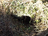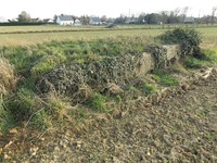 Tranchée ouverte creusée directement dans le sol et reliant les ouvrages bétonnés entre eux. Cet élément se trouve dans la partie ouest du site et apparaît comme le dernier témoin de l'ancien réseau de tranchées autrefois plus important. La parcelle n'ayant jamais été remise en culture après la guerre, la tranchée s'est peu à peu comblée et érodée mais reste bien visible. A l'heure actuelle, cette tranchée est totalement envahie par la végétation.