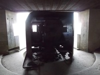 Casemate de tir réalisée en béton armé et parpaings à partir d'un coffrage en bois mais également grâce à la technique du coffrage perdu. Cette construction massive dispose d'une chambre de tir équipée d'une pièce de marine de 150 mm modèle Tbts.K.C/36 protégée par un bouclier métallique blindé. Ce canon dispose d'une portée d'environ 20 kms. Sous la chambre de tir se trouve une petite salle permettant d'évacuer les douilles vides et en arrière de la chambre se trouvent deux soutes à munitions destinées au stockage des obus et des charges de poudre. Un couloir d'accés dessert la casemate. L'entrée du couloir au sud est protégée par un épais mur pare-éclats. Au dessus de l'embrasure de la casemate et du front Todt, des creux ont été aménagés dans le béton frais afin d'être plus tard remplis de terre à des fins de camouflage. Le 6 juin 1944, le canon a ouvert le feu sur la flotte alliée avant d'être neutralisé par les tirs de la marine alliée dans la matinée. Peu après la neutralisation de la batterie par les troupes britanniques, une pièce de DCA a été installée sur le toit de la casemate. Un incident dont l'origine n'est pas encore clairement établie a provoqué l'explosion de la casemate et soufflé l'intérieur ainsi que le canon qui se retrouve en morceau devant la casemate. Aujourd'hui, cette casemate est toujours visible mais a été interdite au public par des rangées de barbelés. L'ensemble de la structure a été pulvérisé et menace de s'effondrer.