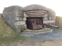 Importante batterie d'artillerie côtière installée au tout début de l'année 1944 sur le plateau au nord du bourg de Longues-sur-Mer et chargée de la défense lointaine du rivage. Culminant à plus de 70 mètres au dessus du niveau de la mer, le plateau offre un champ de tir large et parfaitement dégagé. La fortification du plateau de Longues commence dès 1942 par la Heer qui installe plusieurs ouvrages en béton au bord de la falaise. A partir de fin 1943 l'état-major de la Kriegsmarine décide de renforcer les défenses de la Baie de Seine et la batterie voit le jour. La garnison, composée d'environ 80 marins, dispose de 4 pièces de marine de 150 mm protégées sous d'imposantes casemates achevées en avril 1944. A cela s'ajoutent 2 pièces hippomobiles de 76 mm ainsi qu'un mortier de 80 mm. Une douzaine d'abris enterrés assurent le cantonnement de la garnison et l'ensemble du site est protégé par près de 12 tobrouks répartis sur les abords de la batterie. En avant de la position, un poste de direction de tir semi-enterré permet de scruter l'horizon et de coordonner les tirs des canons. Néanmoins, le 6 juin 1944, ce poste n'avait pas encore reçu la totalité de ses appareils de calcul permettant de diriger efficacement les tirs. Enfin, la défense antiaérienne du site repose sur 3 canons de 20 mm en encuvements et un projecteur de 120 mm. Peu avant le 6 juin 1944, la batterie subit plusieurs raids aériens qui endommagent peu le site mais détruisent les câbles de communication enterrés entre les casemates et le poste de direction de tir. Cela posa un vrai problème aux Allemands qui durent utiliser des signaux lumineux pour communiquer. Au matin du 6 juin 1944, la batterie engagea un duel d'artillerie avec les navires alliés croisant au large. Elle tira alternativement sur le secteur de Gold Beach puis sur celui d'Omaha Beach sans faire de réels dégâts. Les canons de 150 mm furent finalement mis hors d'usage dans la journée du 6 juin par les tirs du croiseur français Georges Leygues. Le 7 juin au matin, la batterie est conquise par les troupes anglaises du 2nd Devonshire Regiment sans réel combat. Après plusieurs années d'abandon, la batterie reprend du service avec le film"Le Jour le plus long" tourné en 1961 puis retombe dans l'oubli. Aujourd'hui, la batterie a été aménagée et mise en valeur et fait office de musée à ciel ouvert. Elle accueille désormais de très nombreux touristes venant voir les canons miraculeusement épargnés par les ferrailleurs après guerre.