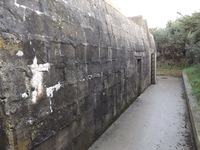 Petite soute réalisée en béton armé implantée non loin d'un emplacement de mortier. Cette soute servait à stocker les obus. Elle n'est plus visible à l'heure actuelle et semble avoir disparu avec l'érosion de la falaise.