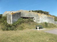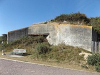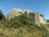 Le Regelbau 105 est une casemate de flanquement destinée à abriter une mitrailleuse de type MG.34 installée derrière une plaque blindée. Cet ouvrage très peu répandu dans le Calvados se compose d'une chambre de tir accueillant la mitrailleuse protégée par une plaque de blindage type 78P9. A coté de cette pièce, un local doté d'une cloche d'observation type 486P2 permettait de scruter les abords et de fournir des renseignements au tireur. En arrière, une salle de vie assurait le cantonnement des soldats affectés à cet ouvrage. Une réserve servant au stockage est associée à cette pièce. Un couloir d'accès suivi d'un sas anti-gaz dessert l'ensemble. Afin de défendre l'entrée de la casemate, une caponnière avec soute à munitions attenante est présente. Une issue de secours offrait la possibilité d'évacuer la casemate en cas de problème. Cet ouvrage construit au sommet de la dune à l'est du Stp. 02 est orienté vers l'ouest afin que la mitrailleuse puisque couvrir la plage en direction de Franceville. Une casemate Regelbau 667 modifiée a été accolée à la casemate. Il s'agit là d'une configuration extrêmement rare. A l'heure actuelle, la casemate R.105a est toujours visible et demeure en très bon état. Elle mériterait d'être protégée.