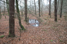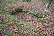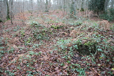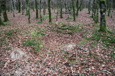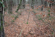 Avec 51 éléments, ce site remarquable est localisé au carrefour de la route forestière de Mathurin et de celle de la Rue de Laval. Il est bien conservé et doté principalement de trous d’homme et de petites fosses quadrangulaires ou carrées (maximum 2X2 m), probablement liées à un cantonnement de courte durée. On perçoit généralement assez aisément l’accès à chaque fosse. Certaines de ces fosses sont même installées sur le versant d’un petit vallon dans la partie occidentale du site, offrant un accès facilité à flanc de coteau. Un aménagement dans le talus qui borde la route forestière de Mathurin (élément 31) correspond certainement à un poste de surveillance ou de contrôle de cette route. Au sein de cet ensemble, les éléments 41 et 43 détonnent et pourraient être sans rapport avec cette position de soldats : il s’agit de deux grands abris de stockage de carburants en tranchées.