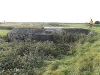 Tobrouk pour mortier construit en béton armé. Cet élément se compose d'un poste de combat auquel est accolée une soute destinée au stockage des obus du mortier. Tout autour du poste de combat on trouve sept niches à munitions intégrées dans la paroi. L'inscription"Rauch" était encore lisible il y a quelques années dans le poste de tir. En 1944, un mortier de 81 mm modèle Gr.W.278 (f) Brandt prenait place dans ce tobrouk. Sa portée lui permettait de contrôler la navigation dans le canal menant au port d'Isigny-sur-Mer ainsi que de défendre l'accès au Wn. 93. Aujourd'hui, ce tobrouk existe toujours. Il semble en bon état de conservation mais est presque totalement remblayé.